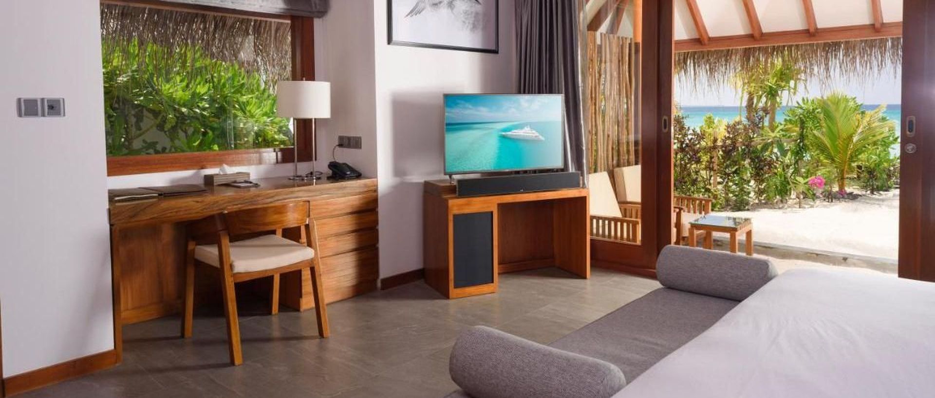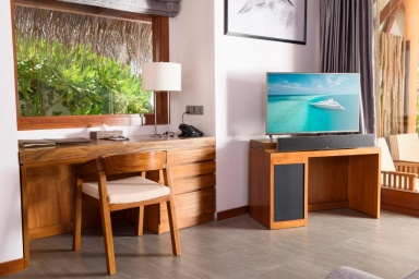 Amari Havodda Maldives - место уединенное, что мне безумно понравилось. Ездили всей семьей, жили в домике на берегу. И у нас было потрясающее ощущение, что мы были одни на острове и это был наш личный пляж. Тут очень тихо, уютно, домик окружен буйной растительностью - плюс к уединенности.