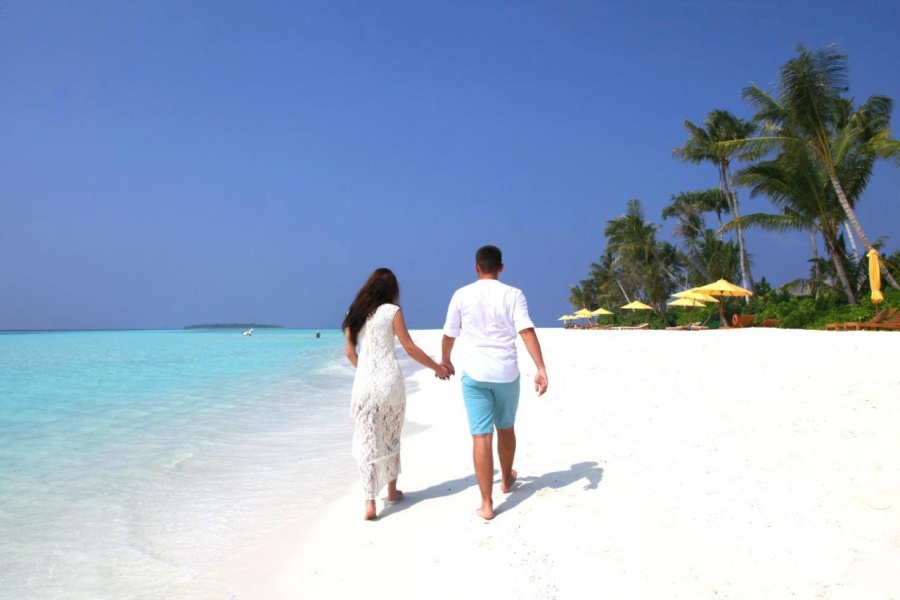 Итак, сам курорт описывают, как “Затерянный в Индийском океане”. Он находится на частном острове, до столицы Мале - 400 км. Расположено местечко на атолле Гаафу Даалу. Первое, что бросилось в глаза, так это изобилие зелени и белый, как на картинках, песок.