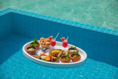 , что добавляло уюта и уединенности. Обратили внимание, что все тут ходят босиком, даже на завтрак обед и ужин. То есть обстановка в отеле расслабленная, нет никакого шума, движухи, все, чтобы побыть наедине с собой или с семьей. Жена ходила на йогу, вставала в 6 утра, ей там очень понравилось, прямо на рассвете занятия. Сервис - просто песня. Все на высшем уровне, то есть ты не успеешь нажать кнопку "Убрать номер", а персонал уже у ваших дверей. Официантов ни о чем не надо просить, они сами все всегда предложат, а если нет каких-то приборов или воды, то замечают это за километр и сразу сами приносят. Еда: нет ничего приевшегося, каждый день новые угощения, причем разные кухни. И важно: была постоянная возможность есть свежие морепродукты каждый день на гриле.